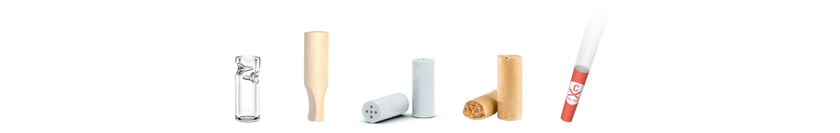 Filters are know by many names - Tips, Crutches, Mouthpieces to name a few. Choosing the right tip is key to giving your brand a unique identity. We have several basic categories of filters. Within each category, you can choose from a variety of colors, sizes and shapes. Add the ability to print your own designs, and the possibilities are truly endless!