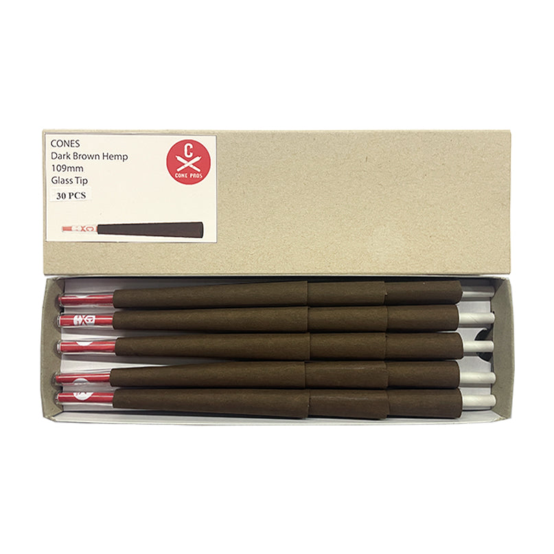 109mm Hemp Cones - Glass Tip - Dark Brown (30ct)