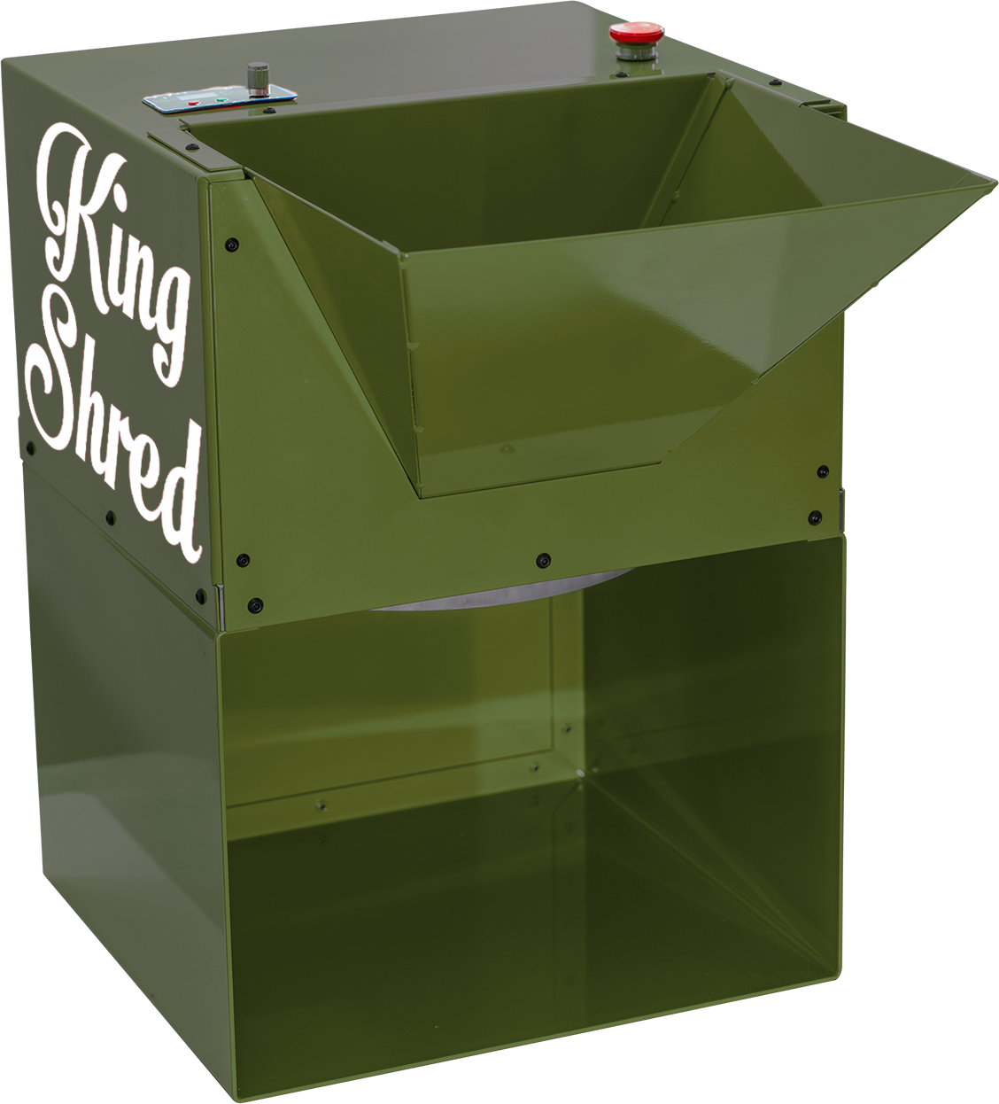 King Shred offers the same mechanism as a hand grinder, but on steroids! King Shred is an American made grinder with one-of-a-kind strength source from it's 1/2 horse power motor that could deliver 50lbs of torque. All that info summed up means that your going to get the best of the best: a bad ass shredder expertly designed for consistent and fluffy grinding. King Shred's motorized hopper means no more babysitting the equipment. Say goodbye to dust, chunks, and clusters that make packing difficult. With easy maintenance and increased efficacy, this superior grinder is a must-have for any production.
