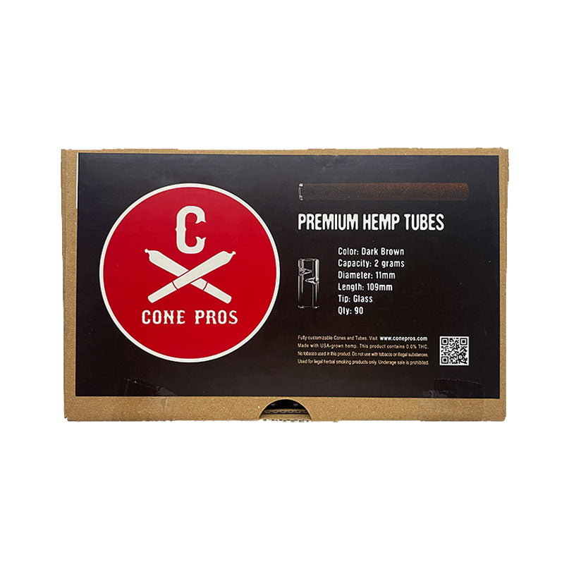 11x109mm Hemp Tubes - Glass Tip (covered) - Dark Brown (90ct)