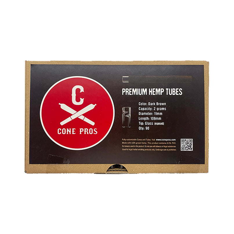 11x109mm Hemp Tubes - Glass Tip (exposed) - Dark Brown (90ct)