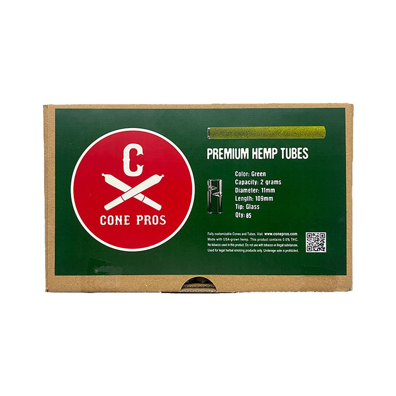 11x109mm Hemp Tubes - Glass Tip (covered) - Green (85ct)