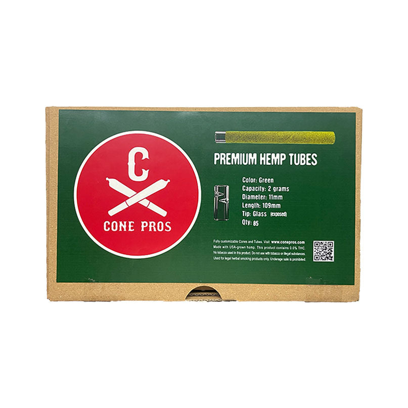 11x109mm Hemp Tubes - Glass Tip (exposed) - Green (85ct)